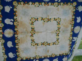 tablecloth is not seriously frayed or damaged in any other