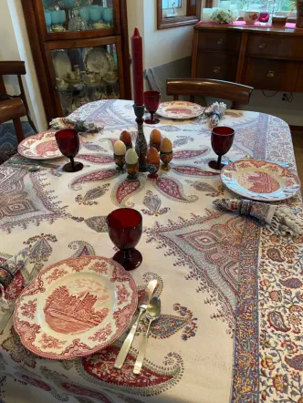 Site Map | Privacy Policy | Facebook | X | Instagram | Pinterest | YouTubeOur obsession has been diagnosed!! - Tactile Textile Disorder (TTD): A little known syndrome characterized by the uncontrollable urges to acquire and hoard vintage tablecloths, tea towels, hankies, and other textiles for the purpose of petting them. Left untreated, TTD leads to full blown Textilosis (our disease), an all-consuming love of vintage tablecloths and textiles. In addition to hoarding and petting, victims of textilosis display other chronic symptoms and behaviors, such as forming online support groups, writing and reading books and articles about the objects of their obsession, festooning their homes with tablecloths, spending inordinate amounts on stain removal products, openly dealing in textiles and even traveling to fraternize with other addicts under the guise of conventions. Happily, there is no cure! - By Clare Dunn