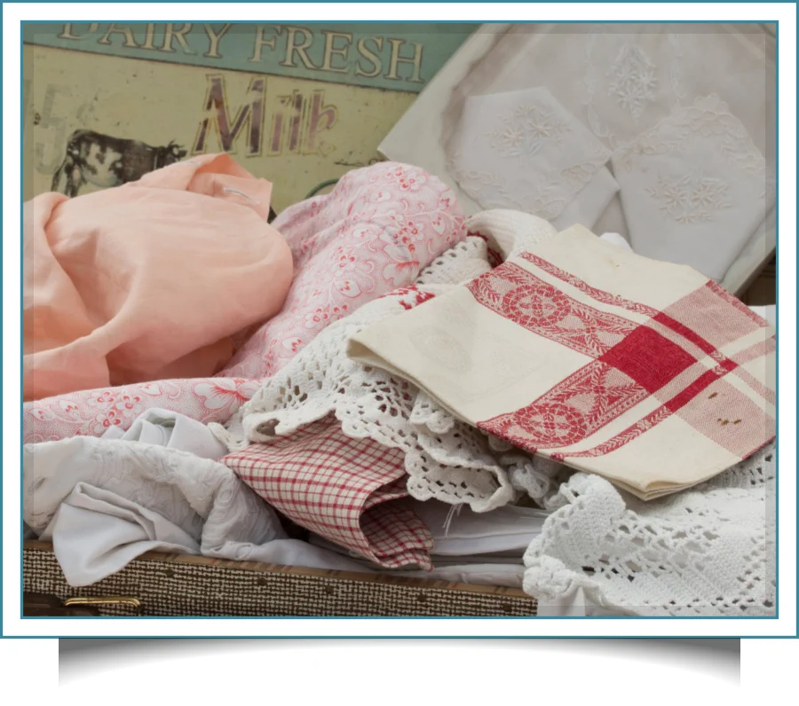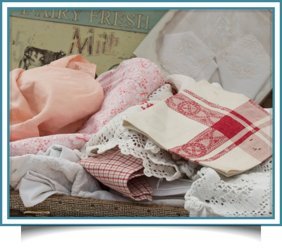 Site Map | Privacy Policy | Facebook | X | Instagram | Pinterest | YouTubeOur obsession has been diagnosed!! - Tactile Textile Disorder (TTD): A little known syndrome characterized by the uncontrollable urges to acquire and hoard vintage tablecloths, tea towels, hankies, and other textiles for the purpose of petting them. Left untreated, TTD leads to full blown Textilosis (our disease), an all-consuming love of vintage tablecloths and textiles. In addition to hoarding and petting, victims of textilosis display other chronic symptoms and behaviors, such as forming online support groups, writing and reading books and articles about the objects of their obsession, festooning their homes with tablecloths, spending inordinate amounts on stain removal products, openly dealing in textiles and even traveling to fraternize with other addicts under the guise of conventions. Happily, there is no cure! - By Clare Dunn